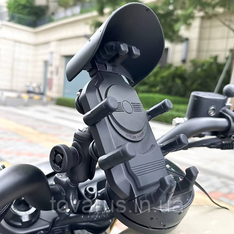 Універсальний антивібраційний тримач телефону для мототранспорта з модулем бездротової зарядки на 15W + Type-C USB порт на 36W.